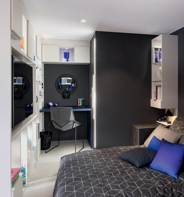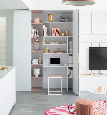 Ses étagères et rangements aux dimensions généreuses offrent tout ce que l’on peut attendre d’un espace de travail élégant.