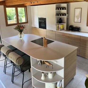 Ainsi, Mobalpa vous propose un accompagnement personnalisé et un devis gratuit correspondant à vos besoins. Les colorations minérales fonctionnent toujours dans une cuisine. Elles ajoutent leur douceur venue de la nature. Pas nécessaire de partir se mettre au vert : chez Mobalpa Brest, nos cuisines aux couleurs naturelles réinventent cet espace comme un cocon familial ressourçant. Authenticité garantie avec ces meubles de cuisine qui prennent leur inspiration de la vie... Nos cuisines aux colorations naturelles sont le terrain idéal pour dispatcher des couleurs plus intenses : alliance heureuse s’il en est, le bleu s’invite dans des camaïeux de beige, en apportant sa pincée d’originalité et de délicatesse. Lorsque l’on veut aménager une petite cuisine, on tente d'abord d’économiser de la place. Dans ces conditions, l’idée d’une cuisine en U semble ne pas coïncider avec cet objectif. Et pourtant cet agencement particulier a des arguments convaincants pour occuper même les plus petites cuisines. Votre cuisine est étriquée et vous pensez qu'y intégrer un coin repas est impossible ? Impossible n'est pas Mobalpa ! Après avoir fait une optimisation des rangements via un mobilier adapté, nous mettons en place le coin repas ! Table carrée, rectangulaire, basse, haute, de forme originale sur-mesure, amovible... Toutes les installations sont envisageables et votre concepteur a la solution. Votre cuisine est étriquée ? Stop au casse-tête pour l'aménager ! Qu'elle soit en U, en L, en T, chez Mobalpa Brest, nous avons un plan... (et plus encore) ! Nos concepteurs ont préparé 7 formats de petite cuisine tenant en compte votre mode de vie, vos habitudes. Du mobilier adapté aux petites pièces, des rangements volumineux... Et peu importe la configuration de la pièce, tout a été parfaitement pensé. De vrais « plus » pour que votre petite cuisine soit aussi agréable qu'une grande.