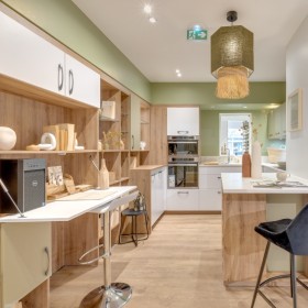 Et pour faire mieux, découvrez tous nos idées pour choisir les bonnes couleurs et le sol de votre cuisine ouverte sur le salon. Chez Mobalpa, nos concepteurs vous aident à imaginer votre intérieur personnalisé à la fois organisé et sur-mesure en fonction de vos goûts et de vos besoins. Ranger, aménager, organiser… Dans une cuisine équipée, il faut être capable d'accéder à tout. Chaque chose à sa place et une place pour chaque chose ! Contemporaine et tellement stylé, la table haute est LA patte déco dans la cuisine ! Avec en plus un peu de style, une touche de confort et un chouia de qualité et de durabilité, soyez prêts à partager d’agréables instants entre amis ou en famille. Agréable et tendance, la véranda d'atelier est l’atout charme de la cuisine de petite taille. Synonyme de facture et cachet, cette cloison vitrée agrandit l’espace et apporte de la profondeur et une belle lumière à une pièce. Les cuisines Mobalpa sont imaginées pour que tout le monde puisse aménager sa cuisine tel qu'il le souhaite, et dans les moindres détails.