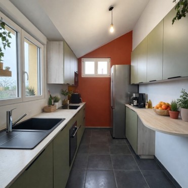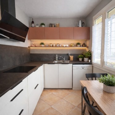 Les dernières innovations en matière de rangements et d'équipements s'adaptent naturellement à vos contraintes architecturales. Grâce à notre expertise d'agenceur, les angles difficiles se transforment en espaces astucieux, tandis que les hauteurs sous plafond sont exploitées avec intelligence.