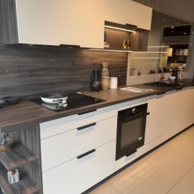 Et si pour garder vos bouteilles à proximité lorsque vous accueillez des amis, prenez l'option de la cave à vin à l'intérieur de la cuisine ! Votre concepteur en magasin réfléchit à une proposition unique, trouve toutes les astuces d'aménagement, les accessoires et équipements adaptés à votre petite surface. Autant de nombreux détails mis bout à bout qui donneront à votre cuisine l'aspect d’une grande. Kitchenette, mini cuisine, coin cuisine... Tout ce qui est petit est mignon. Et ça se voit chez Mobalpa. Pour l'aménagement d'une cuisine de petite taille, nos concepteurs voient tout en grand !