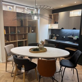 Elle s’inspire de ses codes pour mieux se confondre dans ses usages et son design. Nos bois sont originaires de forêts administrés durablement et nous recyclons plus de 90 % de nos déchets lors de la fabrication. Le choix de rénovation de votre cuisine va découler de la disposition et de la superficie de votre intérieur. Après avoir déterminé l’implantation de l’incontournable triangle d’activités, Mobalpa Poitiers Chasseneuil du Poitou conçoit et organise avec vous la cuisine qui vous convient. Qu’il soit affilié au feu ou à l’amour, le rouge est une teinte qui ne laisse clairement pas de marbre. Néanmoins son insolence et son éclat inégalable pourront de temps en temps faire peur en agencement intérieur. Nos couleurs intenses viennent égayer une cuisine classique comme elles peuvent prendre le dessus dans des mélanges intrépides. Au service de vos besoins, elles se font belles à croquer pour plus encore vous inspirer. N’hésitez pas à consulter nos concepteurs Mobalpa pour un agencement sur-mesure de votre cuisine équipée. Si vous aimez l’esprit atelier, nos modèles sont parfaits pour vous ! Des tabourets design, des chaises en bois stylés, où les matières s'allient pour un effet hyper moderne. Ces chaises en bois font un ensemble salle à manger de bon goût ni trop classique, ni trop coordonné !