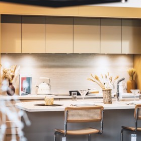Pratique et design, l'îlot en cuisine est aujourd’hui un objet phare de nos cuisines contemporaines. Et à l'inverse des idées reçues, il est tout à fait réalisable d'agencer une cuisine de petite taille avec un îlot central. Découvrez avec Mobalpa Vichy l'ensemble des moyens pour agencer un îlot central ou coin bar dans un espace cuisine limité. La cuisine, place centrale dans la maison, est maintenant un véritable prolongement de la salle à manger. Elle s’inspire de ses codes pour mieux se confondre dans ses usages et son esthétique. Synonyme de place et de convivialité, la cuisine américaine ou partiellement ouverte est faite pour vous si vous souhaitez rendre convivial la préparation des repas et limiter les allers-retours jusqu’à la salle à manger.