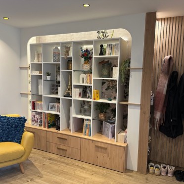 Les armoires sur-mesure s'adaptent aux contraintes architecturales de votre intérieur, maximisant chaque centimètre disponible. Nos concepteurs imaginent des configurations astucieuses qui transforment les zones complexes en espaces pratiques et esthétiques.