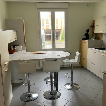 • Cuisine Bois avec plan de travail en pierre