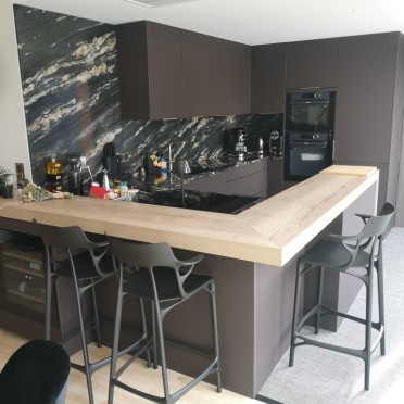 • Cuisine Haut de gamme Effet bois en Îlot
